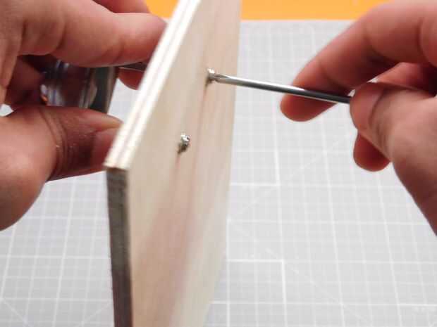 Después de taladrar los agujeros, comprobar si lo has hecho todo correcto y luego con unos tornillos, fijar la rueda en su lugar. Para el equilibrio del robot también necesitará agregar metal entradas como lo he hecho para que la sensación se instala a una altura.