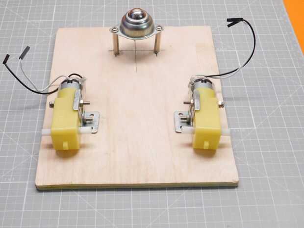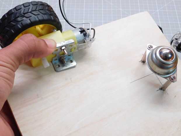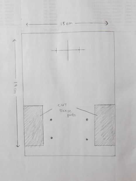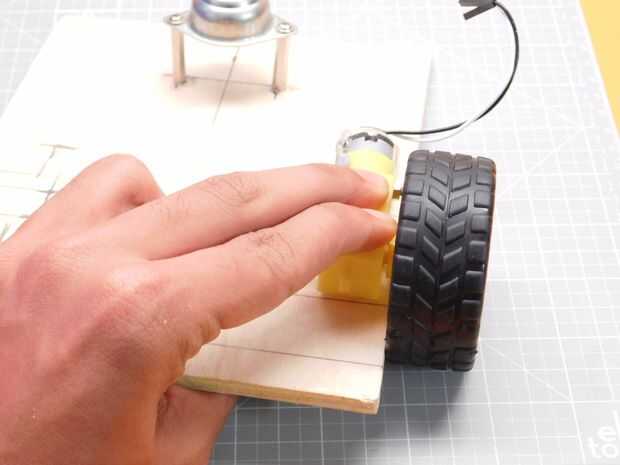Junto con al menos dos orificios para cada motor de montaje, montar una parte rectangular a recortar de la rueda para montarse un poco hacia adentro. La pieza a cortar debe tener un 0,5 cm más que la rueda de diámetro de longitud mientras que la anchura debe ser la mitad del espesor de la rueda. Todo lo marque oscuro con un lápiz y Verifique dos veces todo.