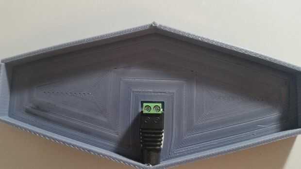 La base debe permitir la mayoría de 2.1x5.5mm 12V DC2.1x5.5mm DC 12V enchufe hembra encontrado en ebay. Puede pegar hacia abajo o cinta de doble palo. También se podría añadir un interruptor de encendido/apagado en la parte posterior o superior si es necesario el interruptor micro debería funcionar bien. Mía será encadenadas a múltiples soportes con un interruptor.