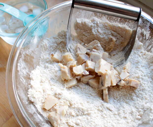 Siendo la combinación con el cortador de pastelería. Seguir adelante hasta que te queda nada más grande que un trozo del tamaño de guisante. :)