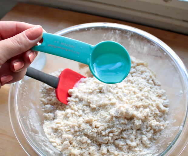 Si tu masa sigue siendo bastante desmenuzable, agregar un poco más agua - no más de 1/2 cucharada a la vez - hasta que mantiene unida.