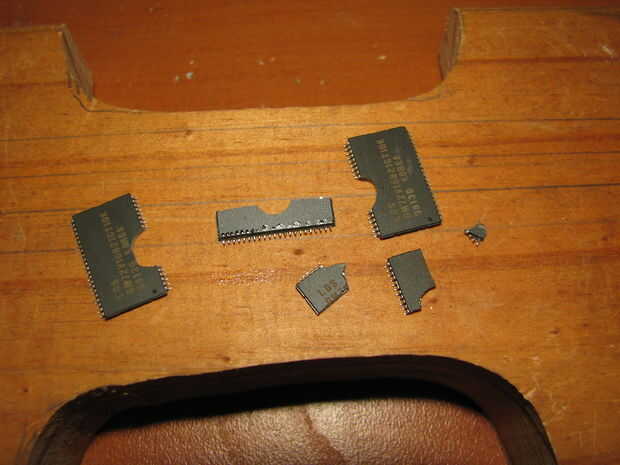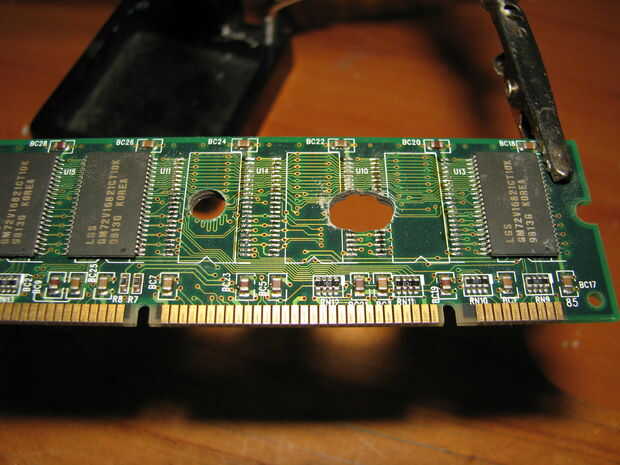 Resultaba más fácil quitar los chips de memoria RAM y luego haga. Lo hice usando una pistola de calor, un par de 'mano' Cocodrilo clip thingie y pinzas.