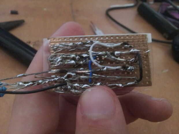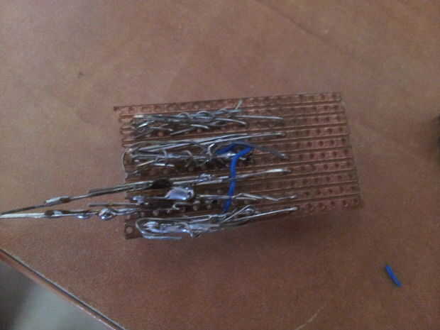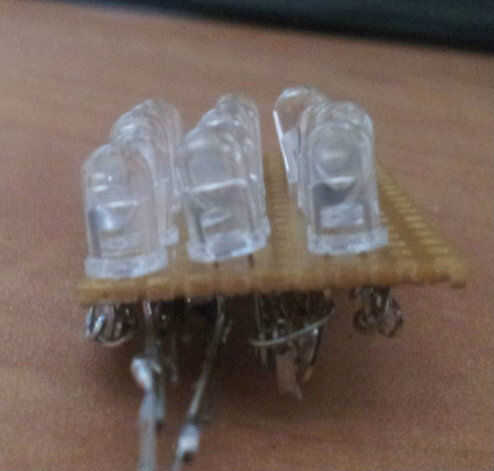 En los próximos cuatro fotos como puedes ver se deberían organizar los LEDs en la protoboard en filas, después de soldar las patas positivas y negativas de los LEDs cada uno entre sí, que va a los cables que salen de la parte de batería.