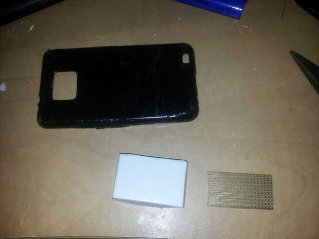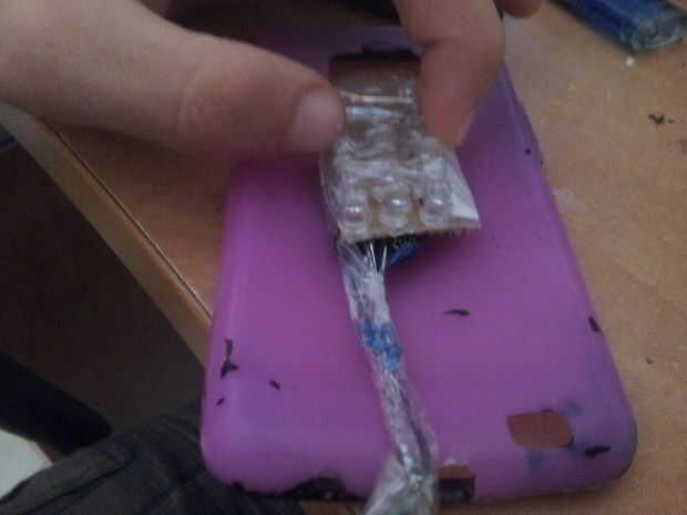 El siguiente paso es el pegamento de la placa a la caja del teléfono y demandar por medio de un cable.