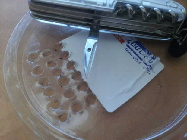 Ahora, tome una caja de plástico y uso una pluma disco para marcar los LEDs pone en él como en foto No.6 y ahora como en pic No.6 corte los agujeros en las marcas, que corte una forma de rectángulo del tamaño de la placa y e insertar los LEDs en los agujeros y pegamento que ellos al igual que en la foto No.8.