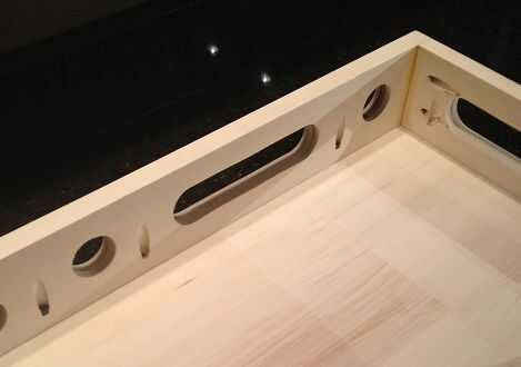 La imagen muestra los orificios de bolsillo para unir la parte superior de la base y los lados. También uso un pegamento para madera y luego atorníllelo en lugar.