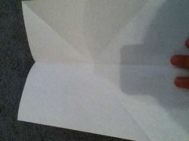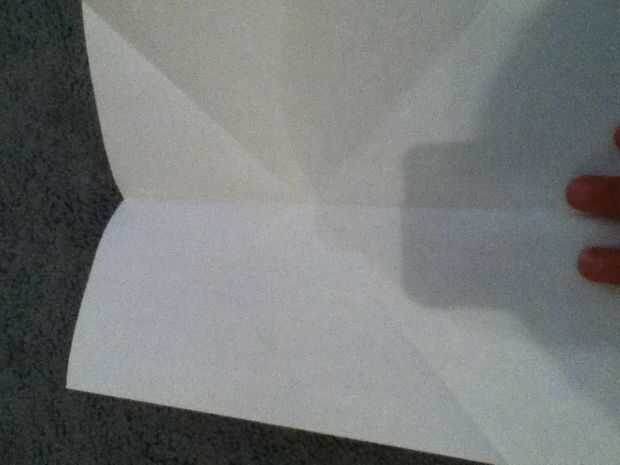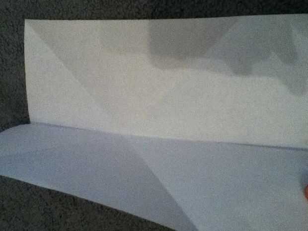 Doblar verticalmente, revelar, luego doblar horizontalmente y desdoblar.