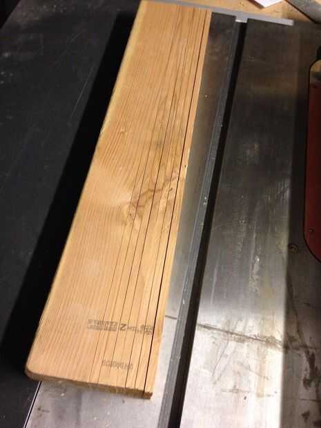I fijar la guía de la hoja de Sierra de mesa a 1/4" y cortar tiras de 7 (1-1/2" W x 1/4" T x 24" L)