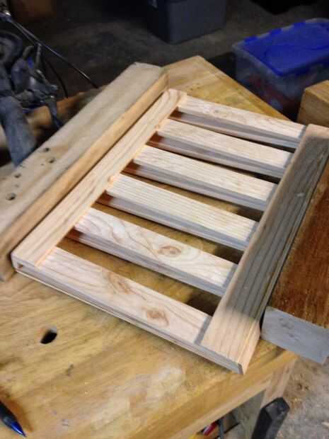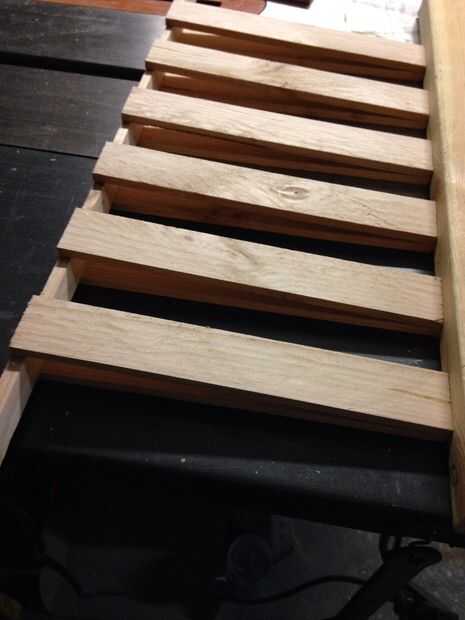 También cortar y pegar una tira 1/4 "x 1/4" madera en el extremo corto de la estructura para evitar que el portátil resbale del stand.