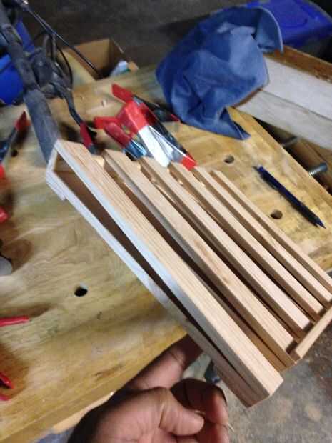 Utilizando un plano de la mano había chaflanado todos los bordes de las tiras.
