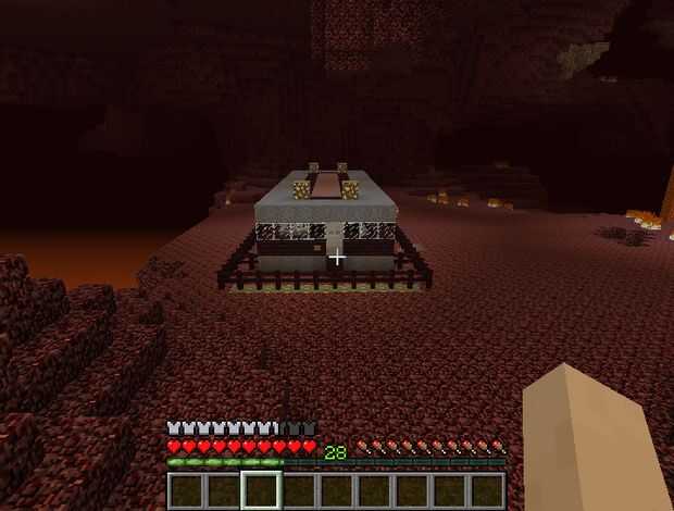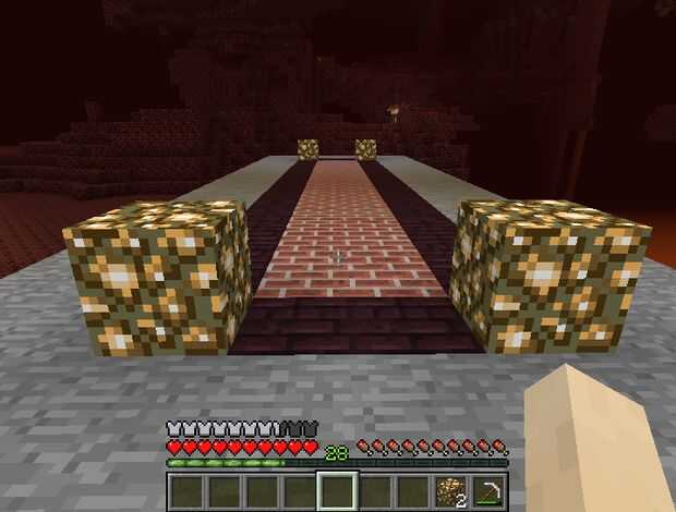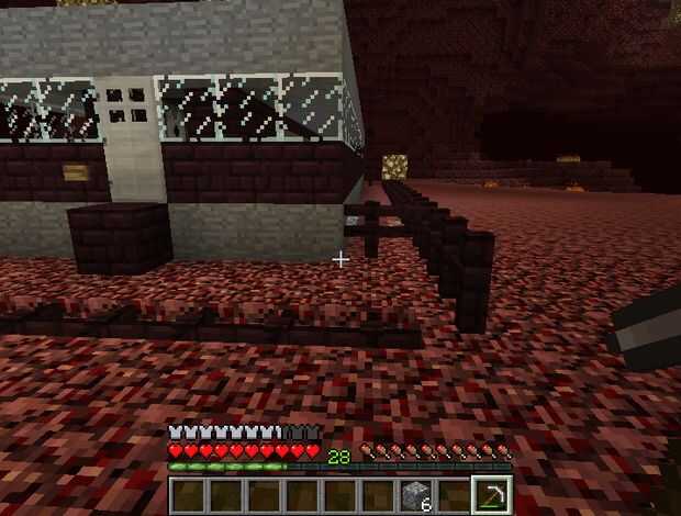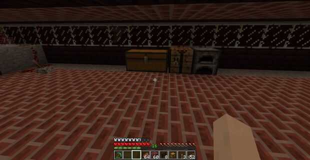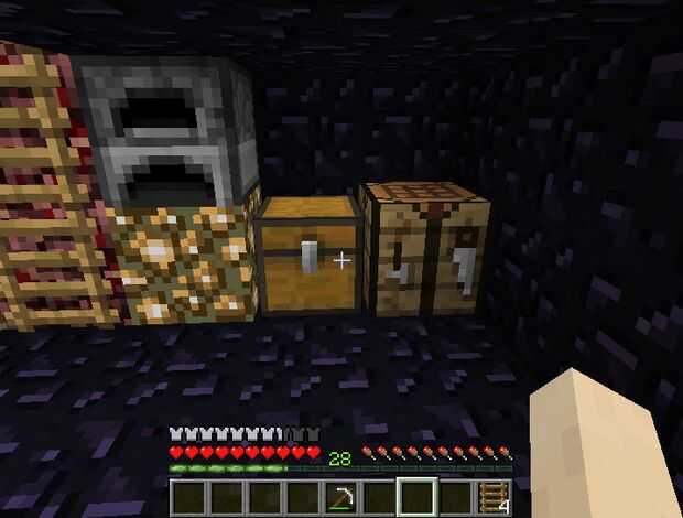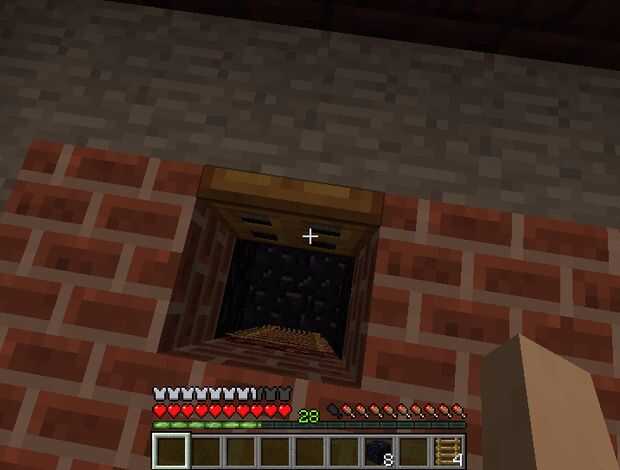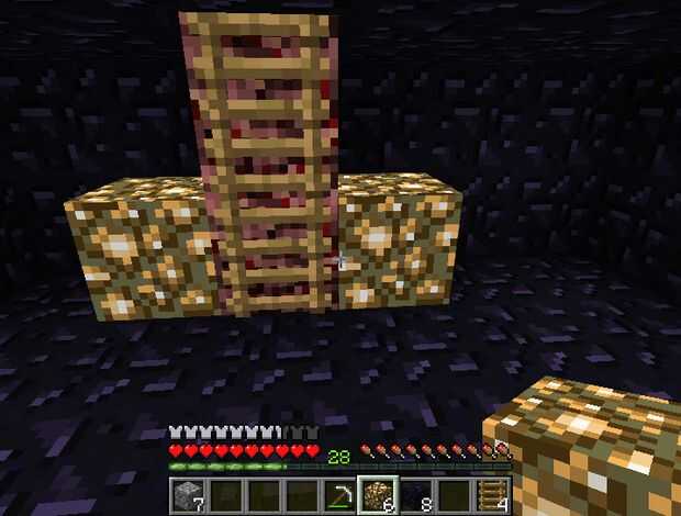 Ahora coloque escaleras en la pared a la superficie, agregar piedra brillante o antorchas de luz y una trampilla en la parte superior de las escaleras de seguridad. Poner el horno, pecho, elaboración de mesa, etc. (no una cama;) tanto en la base principal en la habitación del pánico. Recomiendo colocar piedra brillante tanto en la parte superior del edificio para que no aparezca pigmentación. Colocar cerca del otra en el mismo lugar como se muestra en la foto 6.