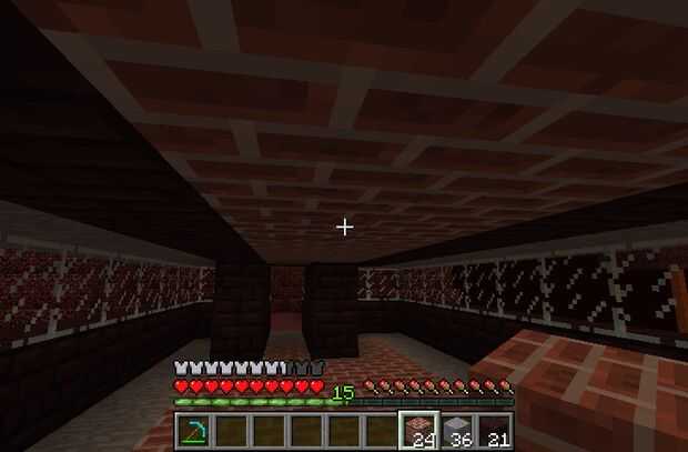 Hacer el techo con ladrillo normal y ladrillo abisal. Colocar una puerta de hierro en el exterior de la puerta y un ladrillo abisal delante de él como un paso de la puerta. Lugar ladrillo abisal cerca todo el edificio, llegando a 2 cuadras hacia fuera delante del paso de la puerta.
