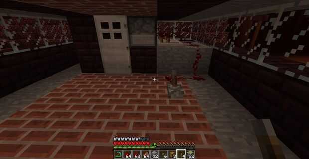 Entra la primera puerta y colocar otra puerta en el otro extremo de la entrada de ladrillo abisal con un botón delante de ella. Vuelva a colocar los dos ladrillos en el lado de la segunda puerta con dispensadores. Lugar cuatro de cualquier bloque y dos repetidores como se muestra en la foto 3. Coloque 4 polvo de redstone y una palanca como se muestra en la foto 4. La idea es que si cerdo-los hombres te persiguen, se puede ir dentro de su base, y si le siguen a través de la primera puerta puede cargar los depósitos con flechas y mueva la palanca varias veces para matar a cualquier cerdo-hombre atrapado entre las puertas.