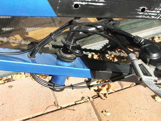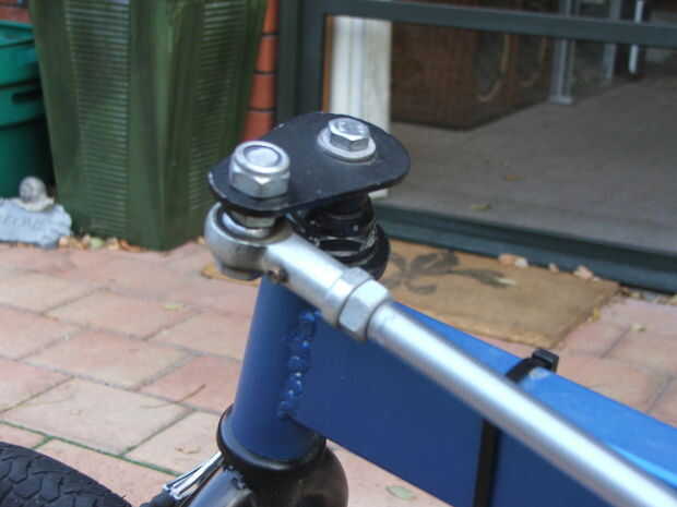 Finalmente se crea la barra de dirección de un pedazo de varilla de 10mm de rosca con el extremo de una varilla en cada extremo. Una vez que haya determinado la cubierta apropiada longitud la varilla con tubo de plástico para hacer una superficie lisa. La barra de dirección se debe ejecutar entre la biela izquierda y el marco, justo por encima de la caja de pedalier.