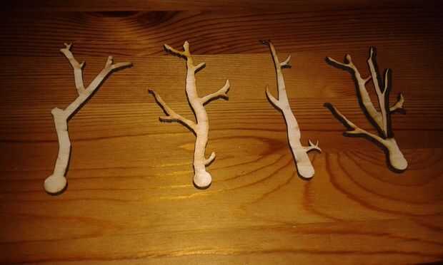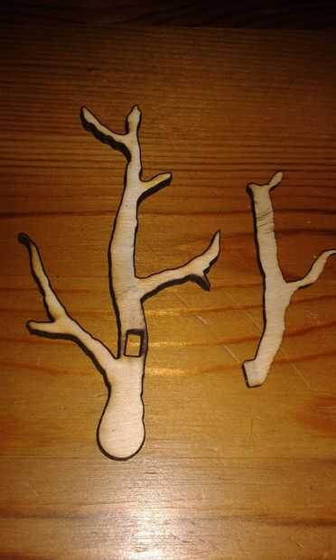 Quería que los carriles de soporte (para el teléfono a inclinarse contra tanto la planta a trepar en) para seguir el tema orgánico, así que aparejado unos diseños de rama diferente en illustrator y corte de madera contrachapada de 3 mm en un cortador láser. Terminé yendo con el segundo desde la izquierda, porque tenía una buena cantidad de detalle en sin tener las piezas finas, y me gustó cómo terminó el aspecto "orgánico" de la misma. Incluso aparejó una rápida versión 3D, agregando una rama que sobresale en la parte posterior con una simple mortaja y espiga de conexión.