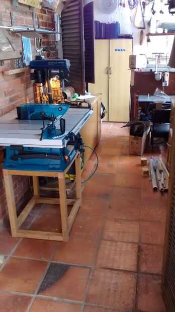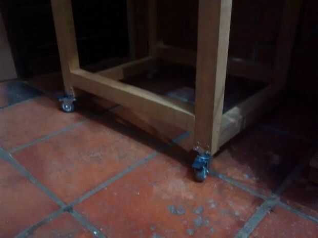 Base feita com caibros de peroba 4 x 5 cm. Utilizei un própria serra para cortar. Instalei 4 rodas com freio com industrias de 30 kg cada. Fazer de de fácil de Projeto muito simples e