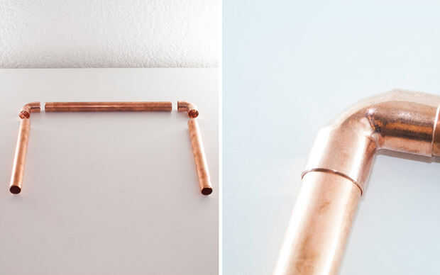 Este será nuestro primer paso de armado. Toma el tubo de 8 pulgadas y únelo a los dos tubos de 6 pulgadas con los dos codos de cobre. Como se ve en la imagen.