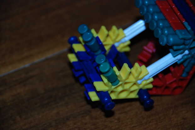 Paso 1: Tomar una barra azul y en él, poner los 6 de los conectores gris claros, como se muestra