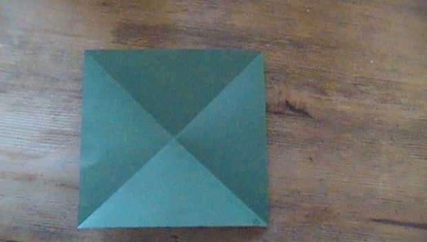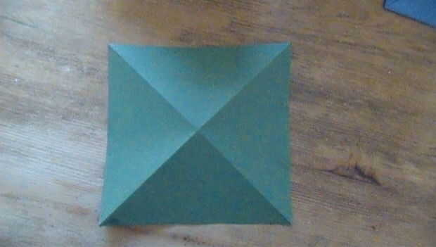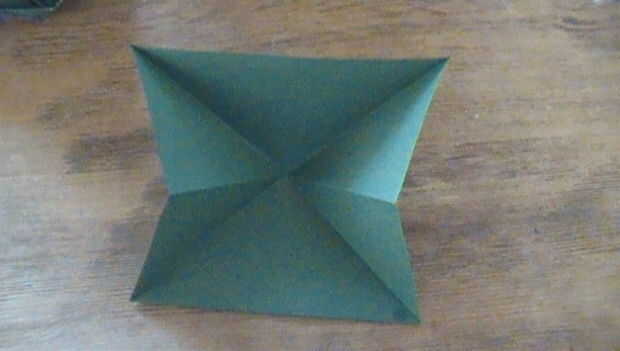 Esto es similar a la base cuadrada, pero en lugar de una "t", hará una "X". Entonces Dale la vuelta para hacer un cuadrado, doble una línea paralela a los bordes, voltee hacia atrás y "colapso en pliegues existentes".