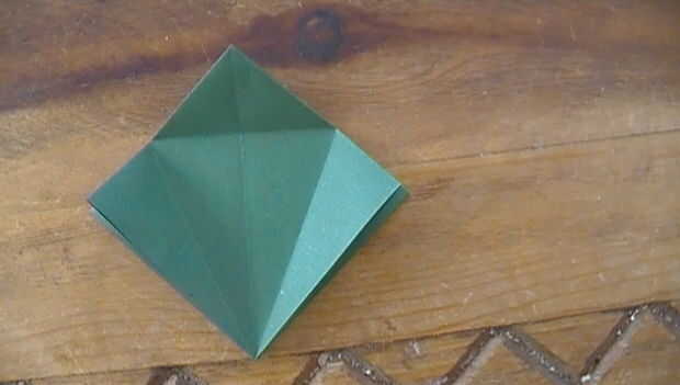 Empezar con su base cuadrada recién aprendida. Ahora todo en la mitad de doblar y desdoblar. Doble los lados derecho e izquierdo inferior hacia el medio (sólo una capa). Luego doblar la parte superior hacia abajo, girando en el borde superior de los dos pliegues anteriores. Ahora se despliegan los últimos tres pliegues. Debe tener cuatro triángulos. Aquí está el paso duro. Agarrar la parte inferior, parte superior capa solamente! Doble, utilizando el pliegue superior, más reciente como una guía. utilizar los pliegues de la parte dos inferior a arrugarse en un bonito diamante. Ahora Dale encima y repetir del otro lado y presto! Se hace la base de pescado.