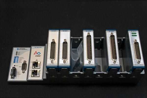 Como el cerebro metafórico del robot, el cRIO se conecta con muchas partes diferentes del sistema de control. Sus módulos intercambiables pueden utilizarse para conectar el Sidecar Digital, el desglose análogo y el solenoide de arranque. El cRIO es alimentado por una conexión de 24V desde el tablero de distribución de energía. Conecta con el Router D-Link con un cable de Ethernet, lo que le permite comunicarse con otros componentes conectados al Router, así como de forma inalámbrica en la unidad. Finalmente, el cRIO tiene un puerto serie que puede utilizarse para conectar con los jaguares a través de un CAN bus, que es una opción para el control de los jaguares.
