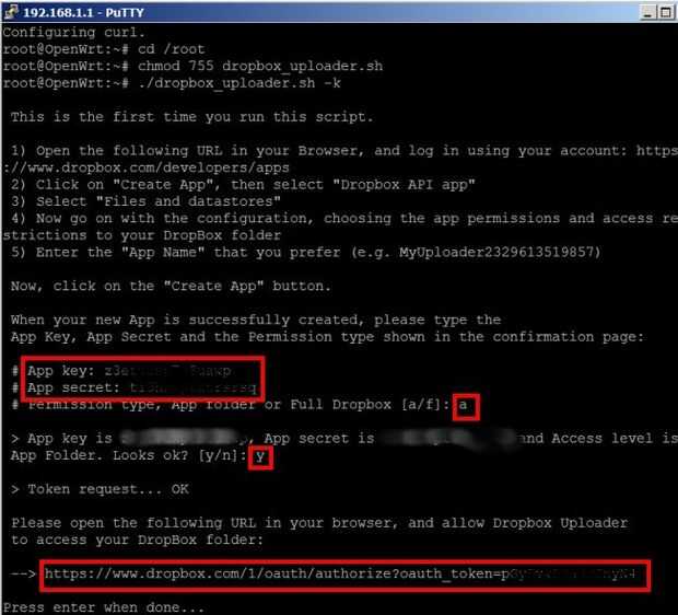 Si todo está bien, generará una dirección URL para el acceso a su carpeta de Dropbox, de lo contrario pedirá "tecla de aplicación mal" hasta había ingrese una clave de la aplicación correcta y secreto de la aplicación.