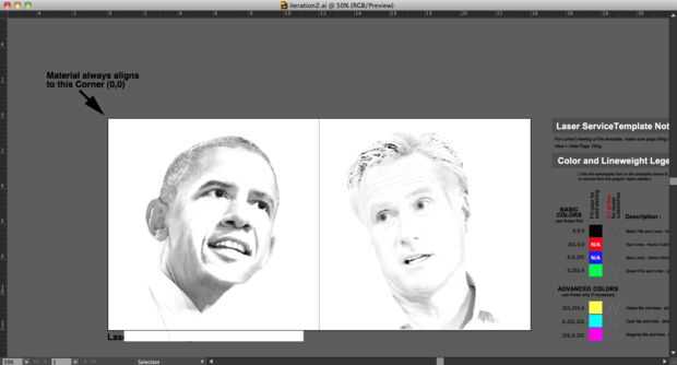 Si su material es el tamaño de la placa (en este caso, 12 x 24) entonces usted no tiene que preocuparse por cortar. Pero si tienes que reducir, esbozar su caja límite de su material con un rectángulo rojo puro en RGB color mode (255, 0, 0) con un grosor de trazo de 0,1. Esto se llama un vector de corte. Estos valores son muy importantes, como el láser de corte ignorará todas las otras líneas.