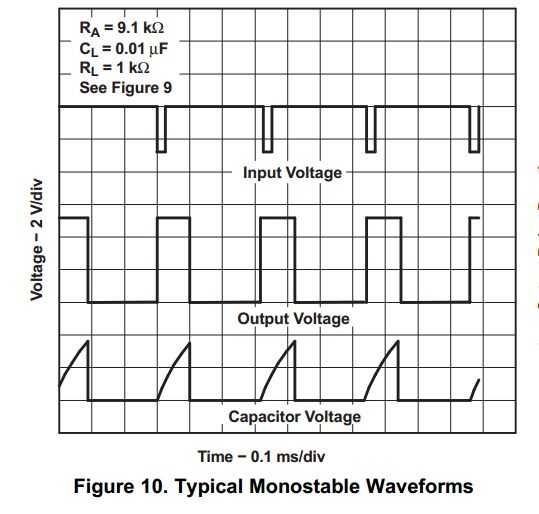 Supongamos que la entrada bajo dura 1 segundo, pero su retraso de sincronización dura sólo para 0.5seconds. En el tiempo t = 0, vamos a decir que la entrada empieza conmutación baja y comienza a la salida de conmutación alta y después de un retardo de tiempo de 0,5 segundos, la salida debe cambiar a la baja al final del retardo de la señal. En este punto sin embargo (t = 0.5), la entrada todavía está en estado bajo. Esto puede causar la salida al instante cambiar otra vez a alta reactivando el retraso y este escenario debe evitarse mediante el establecimiento de la duración de la baja de la entrada a un valor relativamente menor en comparación con la duración de la demora de tiempo. En otras palabras, uno puede aumentar el ciclo de trabajo de la entrada para disminuir la duración de su estado bajo (aumento del tiempo en estado alto).