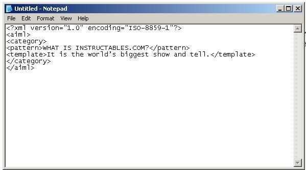 Cuando el usuario le preguntó, ¿qué es (una entrada), el bot AIML responderá: es mostrar mayor y contar del Mundial (una salida). Como se puede ver, es tan fácil. Si le pide un chatbot, simplemente buscará un modelo de cada categoría y si encuentra a una coincidencia (ignorando el caso del texto contenido en el patrón) inmediatamente responderá basan en la plantilla de esa categoría y así simular una conversación normal.