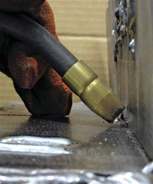 Ahora que tiene le proyecto viró a su tiempo para soldar a. (Nota: siempre que posible intentar soldar con autógena en el ambiente más controlado que pueda. Variables como el viento y la humedad pueden tener efectos adversos en la calidad de la soldadura). Con la máquina en el calor correcto, cable de alimentación y flujo de gas puede comenzar a correr el cordón de soldadura. Al igual que clava con tachuelas que desea sostener la punta de soldadura de 1/2-3/4" sobre el material parental y comenzar a mover la pistola de soldadura a lo largo de la articulación. Cuando se suelda en un conjunto de 90 grados, ángulo de la pistola de soldadura sobre 45 grados y objetivo cumplir el alambre de soldadura en el punto de las dos piezas de metal. Cuando una junta a tope en la posición plana de la soldadura tienen como objetivo el alambre de soldadura en el centro de la articulación. () Si su Butt-Joint/CJP requiere respaldo barra objetivo su soldadura de alambre en uno o los otros metales del padre y construir su paso de la raíz de lo que), Así, ahora tu en la posición correcta y la máquina es puesta en marcha correctamente, comenzar apretando el gatillo y construir su soldadura piscina arriba. Una vez que de la autógena es el tamaño deseado arrastrar o empujar su piscina de la autógena a lo largo de la articulación. Velocidad de la soldadura (ing) es el principal obstáculo afectando la integridad de la soldadura. Si la soldadura es demasiado pequeño, puede que necesite reducir su velocidad de desplazamiento y permitir su charco a construir antes de seguir adelante. Esto asegura que está alcanzando el tamaño de la soldadura correcta, así como suficiente calor para hacer la penetración correcta. Si usted encuentra que una soldadura no es a su satisfactorio es aceptable, sólo tomar esa mano poco 4" amoladora que hemos utilizado durante la preparación de la soldadura, moler hacia fuera su soldadura y vuelva a intentarlo.