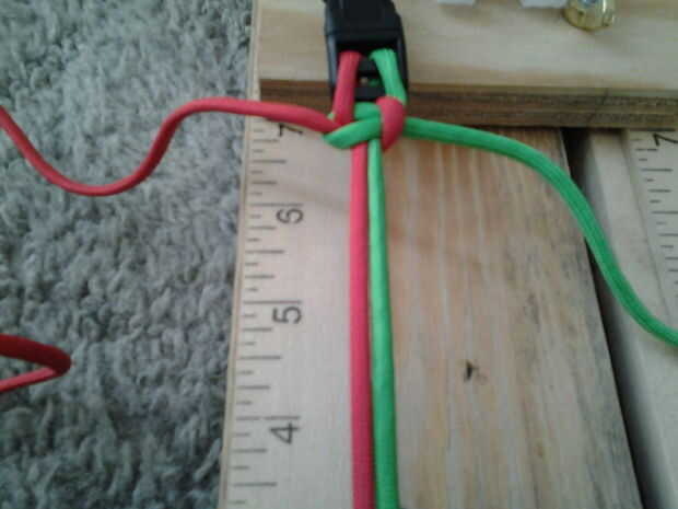 necesita alicates, a menos que primero quemar los extremos de la paracord. Un brazalete de paracord de armadura de cobra. La última cosa que necesitará es una pieza rosa de paracord.Paso 1: Todas las instrucciones están en las fotos.Paso 2: Ahora que