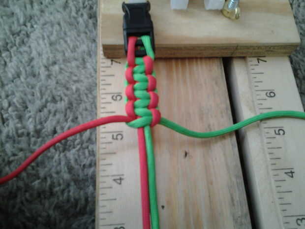 necesita alicates, a menos que primero quemar los extremos de la paracord. Un brazalete de paracord de armadura de cobra. La última cosa que necesitará es una pieza rosa de paracord.Paso 1: Todas las instrucciones están en las fotos.Paso 2: Ahora que