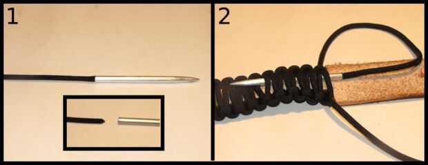 1. Conecte usted Paracord Fid aguja a su paracord. Con su encendedor derrite el extremo de ambas cuerdas y darles forma en un cono. Vuelta de tuerca (tornillo) el paracord en la aguja.