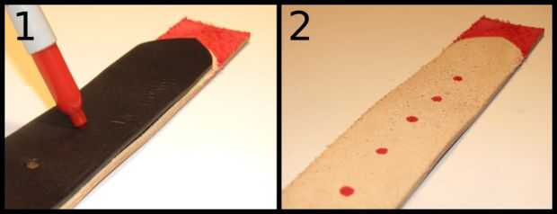 2. Ahora debe tener unos puntos que representan donde usted será ser los agujeros de perforación para su hebilla junto con una longitud y forma de la punta de la correa.