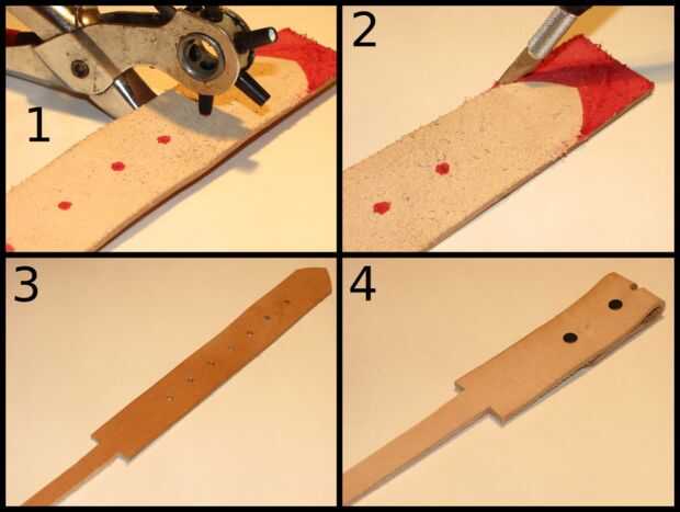 Paso 5: Los agujeros de la hebilla de perforación y que forma el extremo de la correa