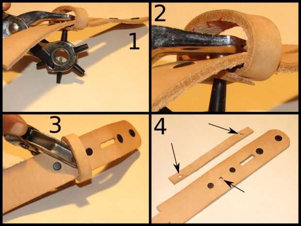 1. Envuelva la correa mantenga en su lugar una hoja de su Perforadora de cuero y sacador de agujero de 1/8" a través de las tres capas.