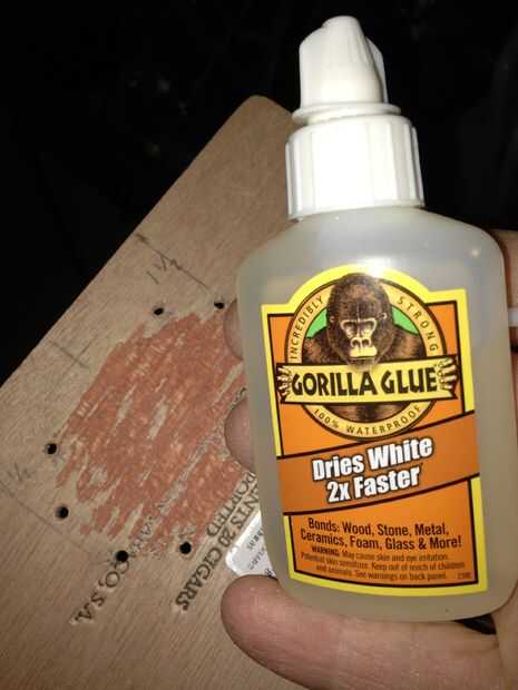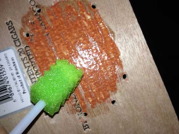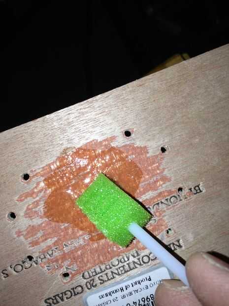 Seguir adelante y borrar todas las marcas o luz de arena apagado. Ahora montar la placa del plástico a la caja de cigarro. Utilizar un pegamento que se adherirá para plástico y madera. Extienda el pegamento en un lado y agua en el otro lado (Asegúrese de no utilizar demasiado pegamento - se escape por los laterales y hacer un lío). Utilice los tornillos para sostenerlo en su lugar. Y utilizar un peso para ayudar a mantenerla Dile el adhesivo se seque.