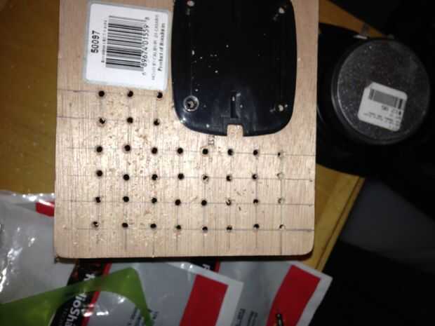 amplificador para protoboard - clavijas de empuje por la parte superior de la soldadura (top no tiene cobre) utilizar placa impresa de Radio Shack para resultados fáciles.Paso 1: 0.01 uF película de poliester condensador Soldadura 0.01uF tapa. Para p