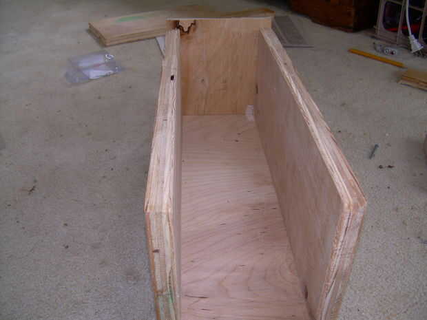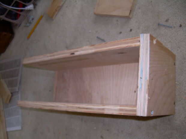 así que primero lo primero que necesita hacer la caja. El como hacerlo es primer clavo los dos lados en la parte inferior también conocido como clavo a través de la parte inferior y en el lado de las piezas de madera que conforman los lados de la trampa. Asegúrese de perforar agujeros piloto antes de que clavo o tornillo. Usé tres clavos para cada, uno en el centro y uno en cada extremo. Después de recibir ambos lado en la parte inferior de su tiempo a añadir la parte de atrás. línea de la espalda con los dos lados y la parte inferior y uñas en.