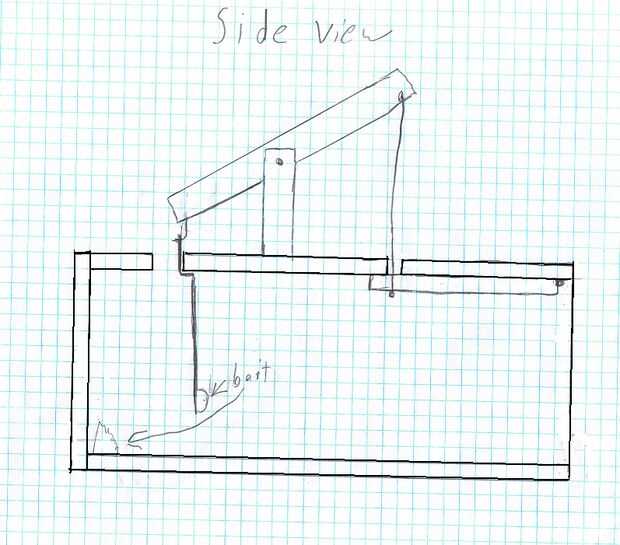 OK la idea es una gran caja de madera con una puerta que hace pivotar cerrada detrás de la bestia como come el sabroso manjar al final del túnel.