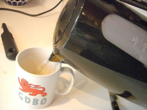 Algunos de ustedes pueden notar que estoy agregando el agua para el jengibre después se hierve, en vez de hervir el agua con el jengibre en él como algunas otra recetas convocatoria de. Esto es solo mi preferencia; ahorra unos minutos, ya que puede picar el jengibre, mientras que el agua esté hirviendo, y previene el té de excesivamente picante/amargo. (También significa que puede utilizar un hervidor eléctrico sin tener que limpiar luego.) Si bien es cierto que no extraer bastante ya que muchos de los productos químicos activos del jengibre de este modo, me parece que todavía tienes más que suficiente para calmar un dolor de garganta o defenderse de un resfriado.