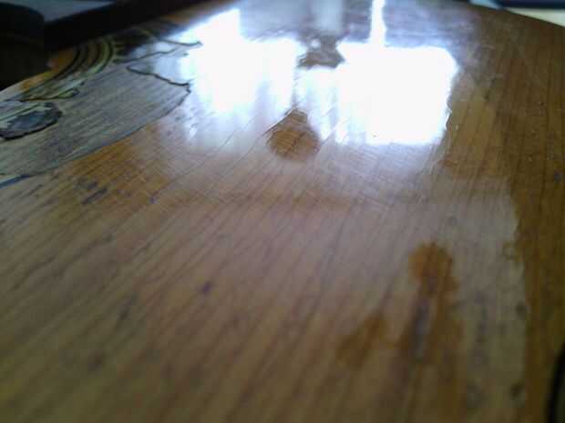 Aquí he intentado algo nuevo más Pronto. Mezclar mi propia aspiradora, Sofix una parte (pisos de madera limpiador y acondicionador), parte de un limpiador de ventanas y cinco parte de agua caliente. (Durante el proceso usted puede mantenerla caliente con la copa en agua caliente.) Aplique una pequeña cantidad en el área pequeña, espera un minuto y limpie con ropa de microfibra. De esta forma que usted puede hacerse cargo de las piezas sueltas roseta y palo de rosa.