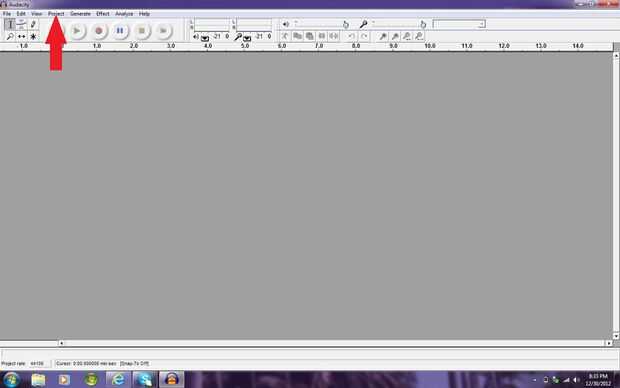 Para importar pistas de audio Haga clic en la ficha de proyecto en la esquina superior izquierda de la pantalla.