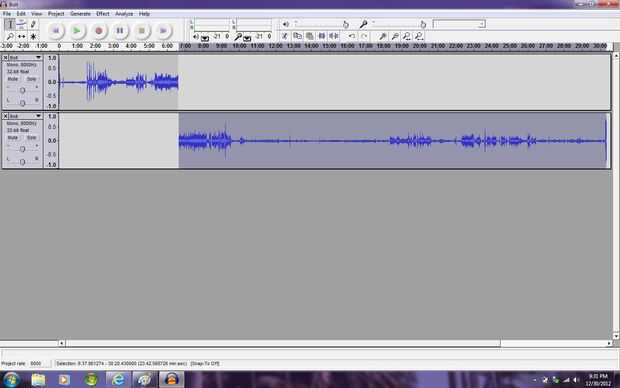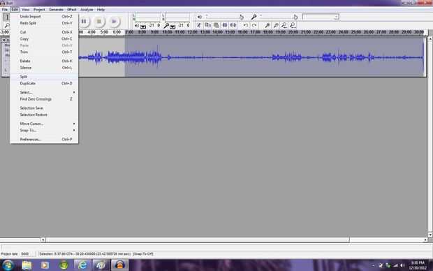 Para dividir las pistas de audio tienes que seleccionar el segundo tienen de lo que quiere dividir. A continuación, hacer clic en la ficha edición. A continuación, haga clic en split. (La segunda mitad del audio split se moverá a una pista de seprate)