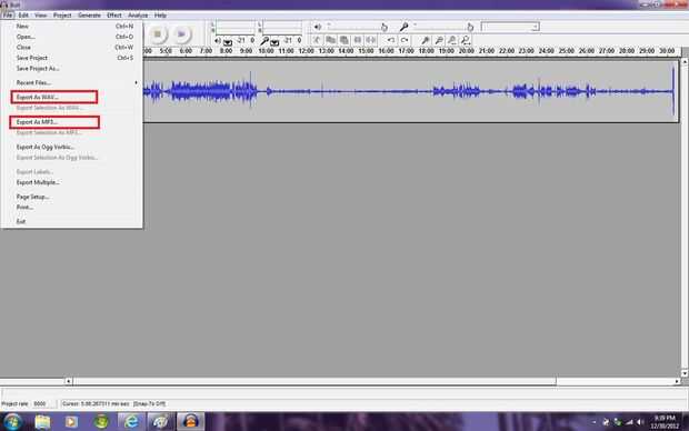 (Si el sonido es siempre desordenado después de exportarlo como WAV o MP3 intente exportar como el otro tipo de archivo que usaste la primera vez)