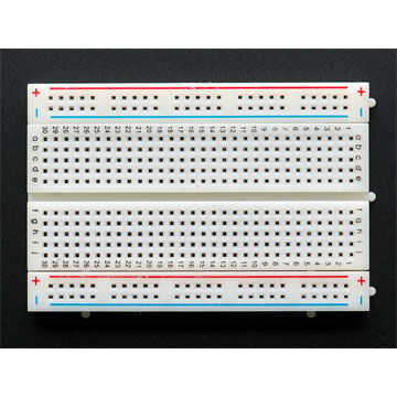 Manteniendo el mismo código del diagrama anterior, las rutas horizontales de rojas y azules representan el poder y la tierra. Los caminos verticales representan las partes del circuito que se conecta entre tierra y la energía. En un tablero real, no hay caminos accesibles será visibles, sólo un montón de pequeños agujeros, como se ve en el segundo diagrama.