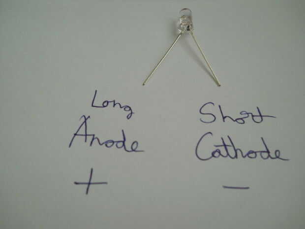 El LED tiene 2, el + y el - (como se puede ver en la imagen)