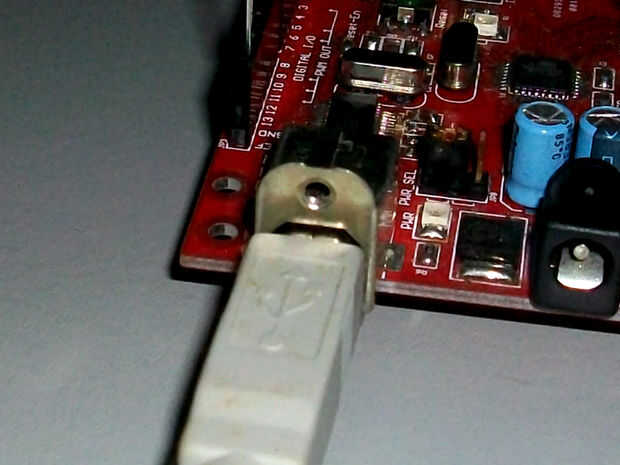 1) Conecte el cable de impresora USB a su Arduino. 2) conectar tu Arduino al ordenador mediante el puerto USB. 3) Conecte las patillas más de su LED ánodo (+) al PIN 13 (idealmente pin número 13 debido a la resistencia conectada a él) y el cátodo (-) más corto a tierra (GND).