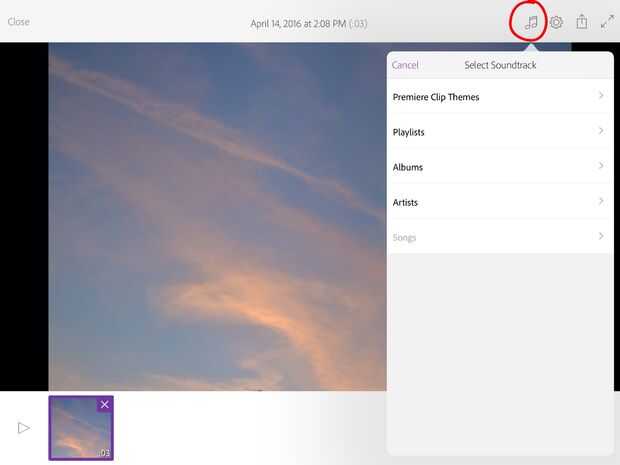 A la izquierda de la configuración del proyecto es una nota de música, que es donde se puede seleccionar música para el vídeo.