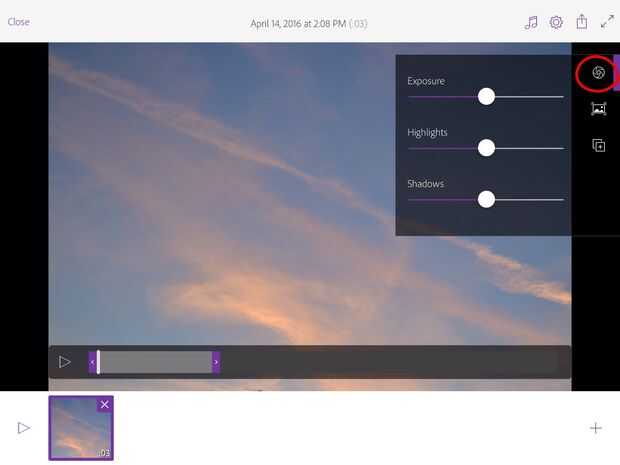 Si quieres hacer algo más que arreglarla luego toque tu video y mira a la derecha. Debe existir un objetivo, una imagen y un cuadrado con un signo más.